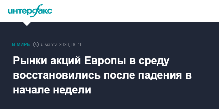 Рынки акций Европы в среду восстановились после падения в начале недели