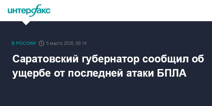 Москва. 5 марта. INTERFAX.RU - В Саратовской области в результате ночной атаки БПЛА повреждены несколько гражданских зданий, пострадали три человека, сообщил губернатор Роман Бусаргин в своем телеграм-канале.