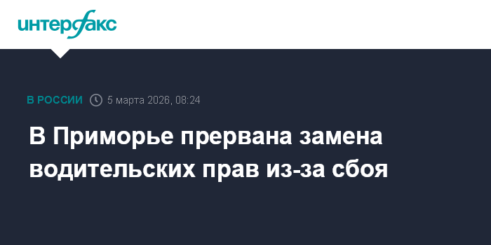 Москва. 5 марта. INTERFAX.RU - В Приморском крае из-за сбоя программного обеспечения остановлено оказание государственных услуг по регистрации транспортных средств и замене водительских удостоверений, сообщило краевое УМВД.