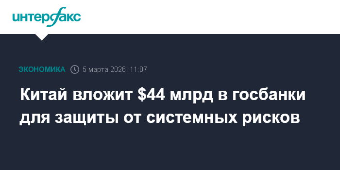 Москва. 5 марта. INTERFAX.RU - Китай объявил о намерении в 2026 году вложить 300 млрд юаней ($44 млрд) в государственные банки для защиты от системных рисков и увеличения финансирования технологических компаний.