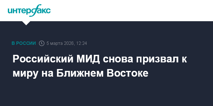 Москва. 5 марта. INTERFAX.RU - Россия вновь призывает все стороны конфликта на Ближнем Востоке остановить боевые действия, заявили в российском МИД.