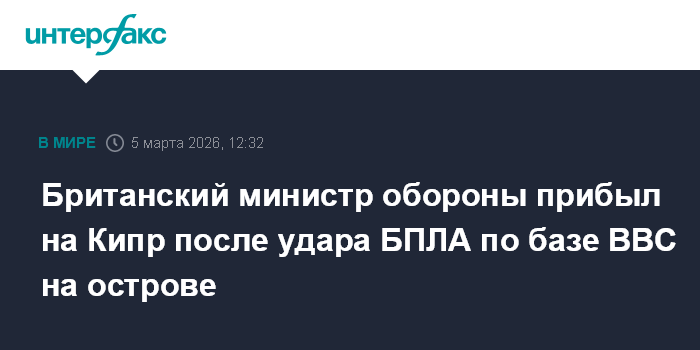 Москва. 5 марта. INTERFAX.RU - Глава британского Минобороны Джон Хили в ночь на четверг начал визит на Кипр после того, как ранее база ВВС Великобритании "Акротири" на острове подверглась атаке беспилотника, сообщает The Guardian.