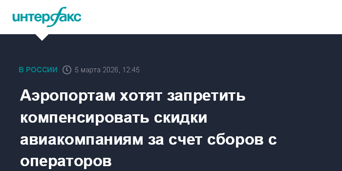 Москва. 5 марта. INTERFAX.RU - Федеральная антимонопольная служба предлагает законодательно запретить аэропортам компенсировать убытки от скидок авиакомпаниям за счет повышения стоимости услуг для операторов, работающих на территории аэропорта.