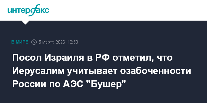 Посол Израиля в РФ отметил, что Иерусалим учитывает озабоченности России по АЭС "Бушер"