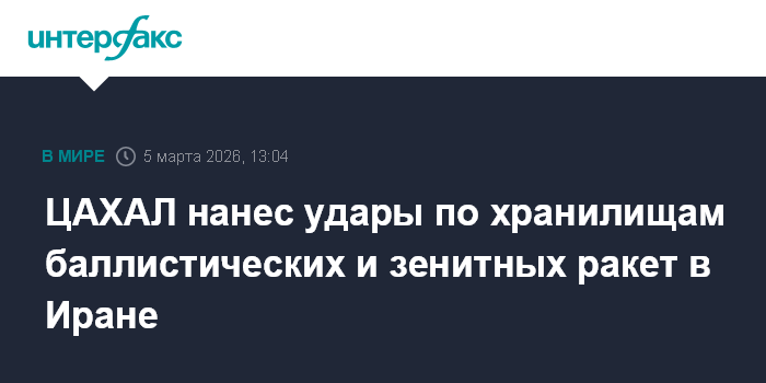 Москва. 5 марта. INTERFAX.RU - В Армии обороны Израиля (ЦАХАЛ) в четверг сообщили, что атаковали ряд целей, связанных с иранской программой баллистических ракет и с противовоздушной обороной.