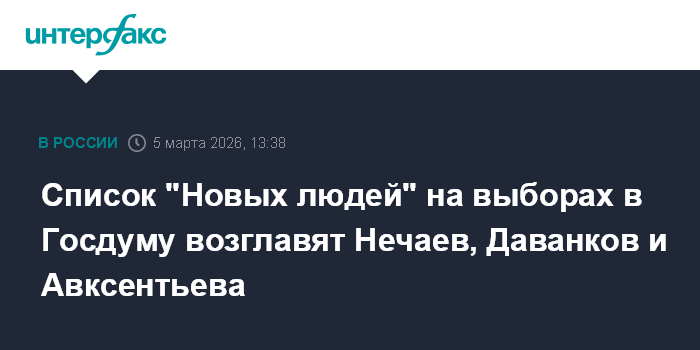 Москва. 5 марта. INTERFAX.RU - Лидер "Новых людей" Алексей Нечаев заявил, что федеральный список партии на выборах в Госдуму возглавят три человека.