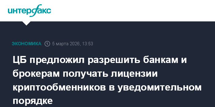 ЦБ предложил разрешить банкам и брокерам получать лицензии криптообменников в уведомительном порядке