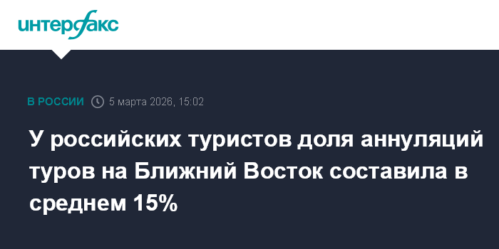 У российских туристов доля аннуляций туров на Ближний Восток составила в среднем 15%
