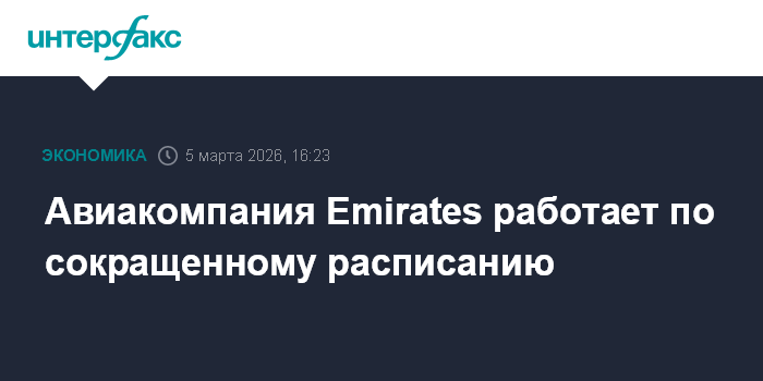 Москва. 5 марта. INTERFAX.RU - Базирующаяся в Дубае авиакомпания Emirates работает по сокращенному расписанию в связи с ограничениями полетов в регионе.