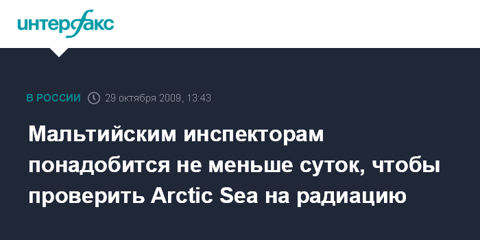 Москва. 29 октября. INTERFAX.RU - Сухогруз Arctic Sea проверяют на радиацию инспекторы департамента гражданской обороны Мальты, после проверки судно получит разрешение на вход в порт Ла-Валетты, сообщило в четверг Интернет-издание "Морской Бюллетень".