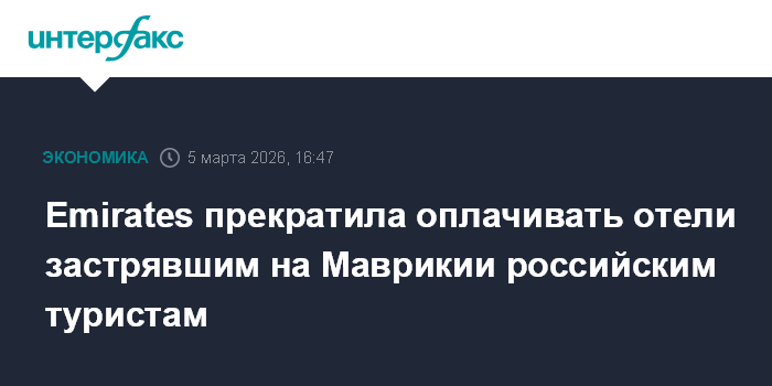 "4 марта Emirates совершил первый вывозной рейс с Маврикия в Дубай. К перевозке были приняты только пассажиры с билетами авиакомпании на пропущенные ранее из-за закрытия воздушного пространства Дубая рейсы. Сегодня в расписании аэропорта Маврикий стоят три рейса в Дубай. С той же даты авиакомпания перестала производить оплату счетов за отели, в которых она разместила застрявших туристов", - говорится в сообщении.