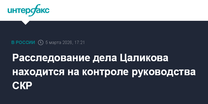 Расследование дела Цаликова находится на контроле руководства СКР