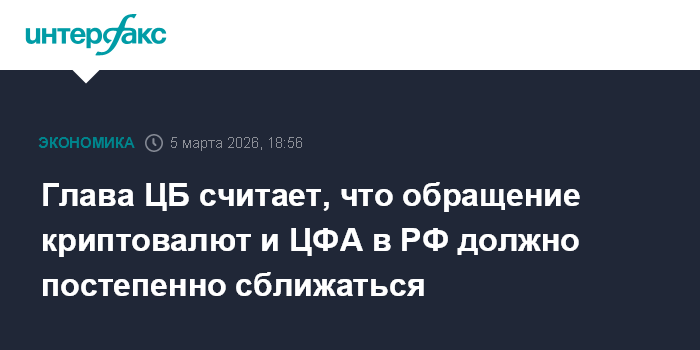 Глава ЦБ считает, что обращение криптовалют и ЦФА в РФ должно постепенно сближаться