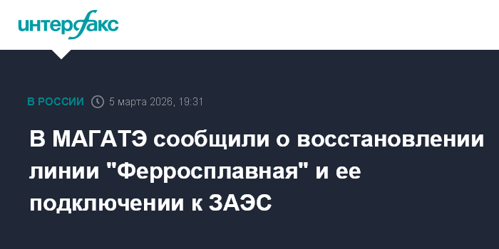 Москва. 5 марта. INTERFAX.RU - Специалисты восстановили линию "Ферросплавная" и подключили ее к Запорожской АЭС, сообщили в четверг в МАГАТЭ.