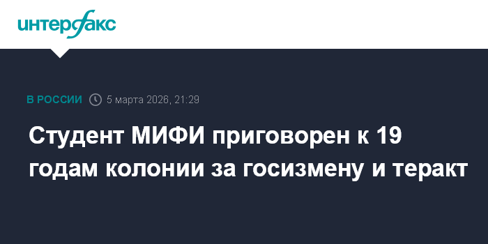 Студент МИФИ приговорен к 19 годам колонии за госизмену и теракт