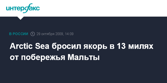 Москва. 29 октября. INTERFAX.RU - Сухогруз Arctic Sea стоит в 13 милях от мальтийского побережья, к нему отправился снабженческий корабль, сообщил в четверг сайт издания "Морской бюллетень".
