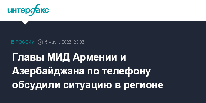 Москва. 5 марта. INTERFAX.RU - Главы МИД Армении и Азербайджана Арарат Мирзоян и Джейхун Байрамов в ходе телефонного разговора в четверг обсудили события в регионе, сообщили в армянском министерстве иностранных дел.