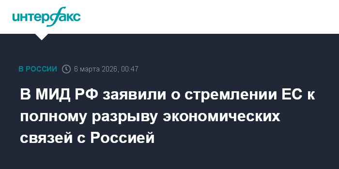 В МИД РФ заявили о стремлении ЕС к полному разрыву экономических связей с Россией