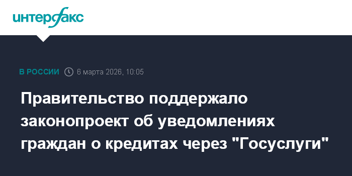 Правительство поддержало законопроект об уведомлениях граждан о кредитах через "Госуслуги"
