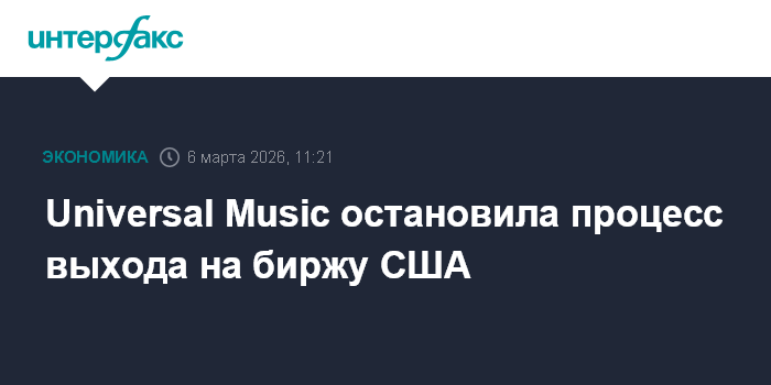 Москва. 6 марта. INTERFAX.RU - Крупнейшая звукозаписывающая компания мира Universal Music Group (UMG) объявила о приостановке планов по размещению акций на фондовой бирже США, ссылаясь на рыночные условия.