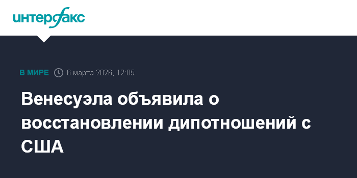 Москва. 6 марта. INTERFAX.RU - Власти Венесуэлы объявили о восстановлении дипломатических отношений с США, передает EFE.