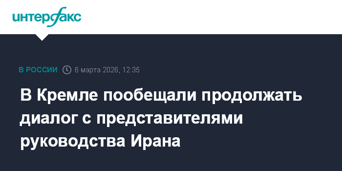 Москва. 6 марта. INTERFAX.RU - В Кремле заявили, что находятся в диалоге с руководителями Ирана и продолжат этот диалог.
