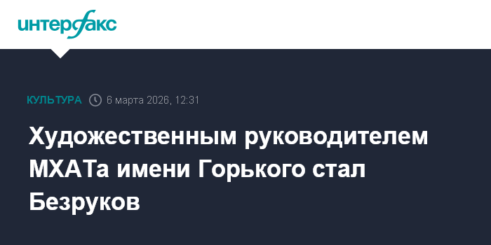 Москва. 6 марта. INTERFAX.RU - Художественным руководителем МХАТа имени Горького назначен Сергей Безруков, сообщила глава Минкультуры Ольга Любимова.