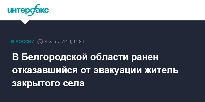 В Белгородской области ранен отказавшийся от эвакуации житель закрытого села