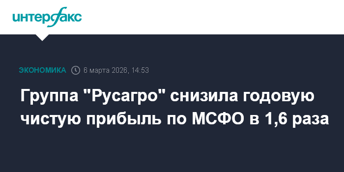 Москва. 6 марта. INTERFAX.RU - Чистая прибыль группы "Русагро" по МСФО в 2025 году составила 19,9 млрд рублей, что в 1,6 раза меньше, чем в 2024 году (32 млрд рублей), сообщается в отчетности компании.
