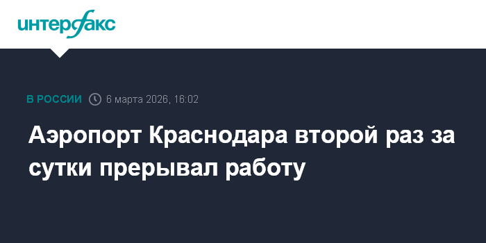 Аэропорт Краснодара второй раз за сутки прерывал работу