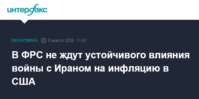 В ФРС не ждут устойчивого влияния войны с Ираном на инфляцию в США