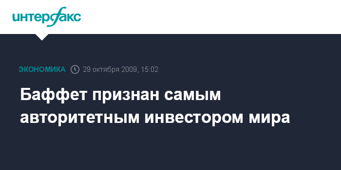 Баффет признан самым авторитетным инвестором мира