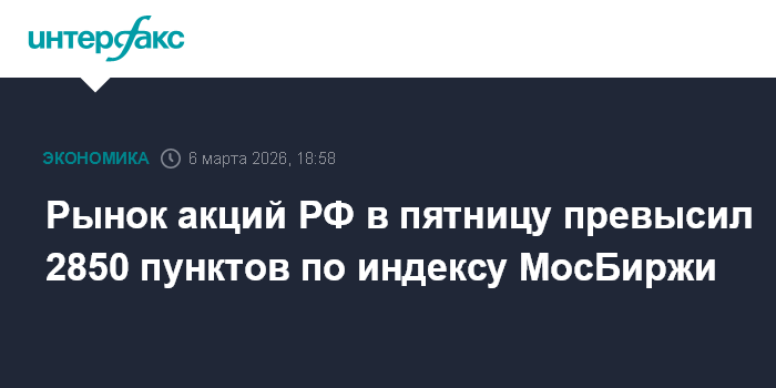 Рынок акций РФ в пятницу превысил 2850 пунктов по индексу МосБиржи