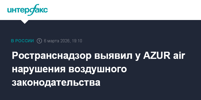 Москва. 6 марта. INTERFAX.RU - Ространснадзор в результате внеплановой проверки авиакомпании AZUR air выявил факты нарушения воздушного законодательства, сообщило ведомство, не уточнив, что это за нарушения.