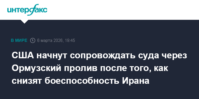 США начнут сопровождать суда через Ормузский пролив после того, как снизят боеспособность Ирана