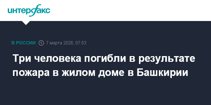 Москва. 7 марта. INTERFAX.RU - Пожар в жилом доме в Туймазинском районе Башкирии унес жизни трёх человек, сообщает региональное ГУ МЧС в субботу.