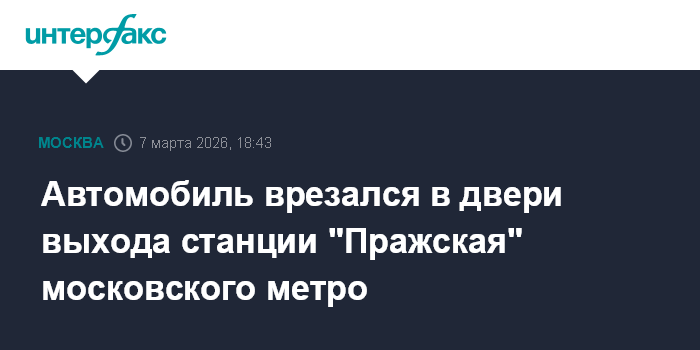 Москва. 7 марта. INTERFAX.RU - Легковой автомобиль въехал в двери выхода № 9 станции "Пражская" Серпуховско-Тимирязевской линии московского метро, никто не пострадал, выход временно закрыт, сообщили в столичном департаменте транспорта.