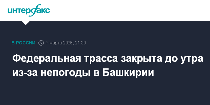 Федеральная трасса закрыта до утра из-за непогоды в Башкирии