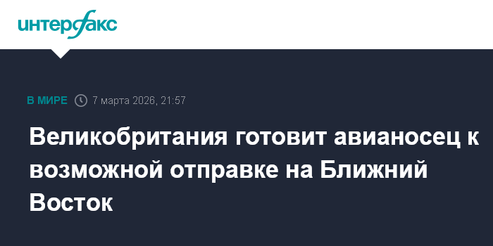 Москва. 7 марта. INTERFAX.RU - Великобритания готовится к возможной отправке авианосца HMS Prince of Wales на Ближний Восток, сообщил телеканал Sky News, ссылаясь на источники.