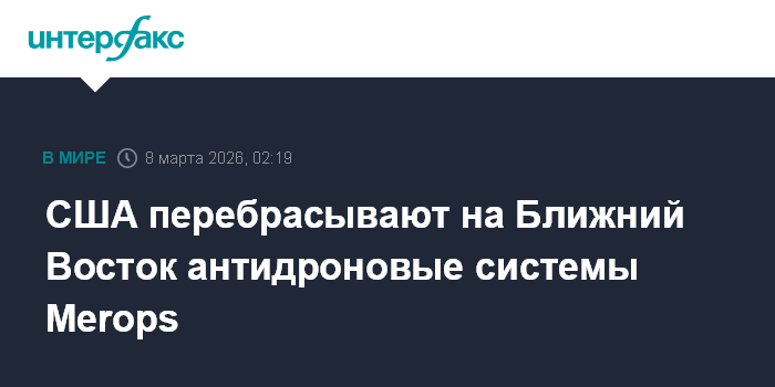 Москва. 8 марта. INTERFAX.RU - Соединенные Штаты вскоре направят на Ближний Восток системы противодействия БПЛА Merops, которые прошли испытания на Украине, для усиления обороны от иранских ударных беспилотников, сообщило агентство The Associated Press, ссылаясь на двух американских чиновников.