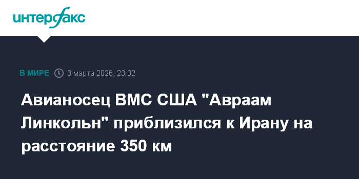 Авианосец ВМС США "Авраам Линкольн" приблизился к Ирану на расстояние 350 км
