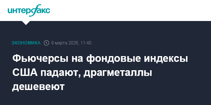 Фьючерсы на фондовые индексы США падают, драгметаллы дешевеют