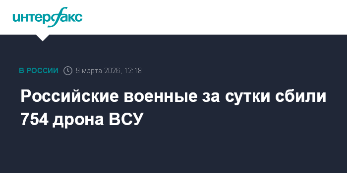 Москва. 9 марта. INTERFAX.RU - Более 750 украинских беспилотников самолетного типа сбиты средствами ПВО за сутки, сообщили в министерстве обороны РФ в понедельник.