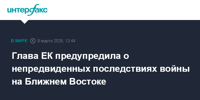 Москва. 9 марта. INTERFAX.RU - Война на Ближнем Востоке чревата непредвиденными последствиями, Европа должна видеть мир таким, какой он есть сегодня, и сделать выводы для формирования внешней политики ЕС, заявила председатель Еврокомиссии (ЕК) Урсула фон дер Ляйен.