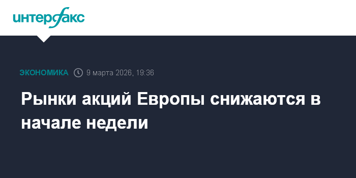 Рынки акций Европы снижаются в начале недели