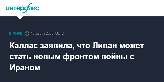 Москва. 10 марта. INTERFAX.RU - Ливан рискует стать еще одним фронтом в войне с Ираном, заявила глава дипломатии ЕС Кая Каллас.
