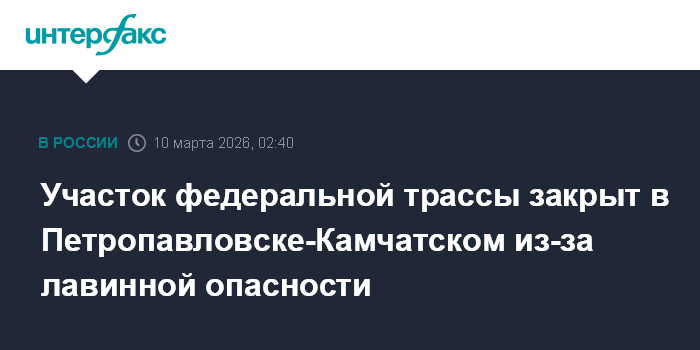 "В целях обеспечения безопасности временно закрыт проезд для всех видов транспорта по участку с 1-го по 5-й км федеральной автомобильной дороги А-401 от Петропавловска-Камчатского до аэропорта. В связи с существующей опасностью повторного схода снежных масс на федеральную трассу. Ограничения движения продлятся до 8:00 по местному времени 11 марта", - говорится в сообщении.
