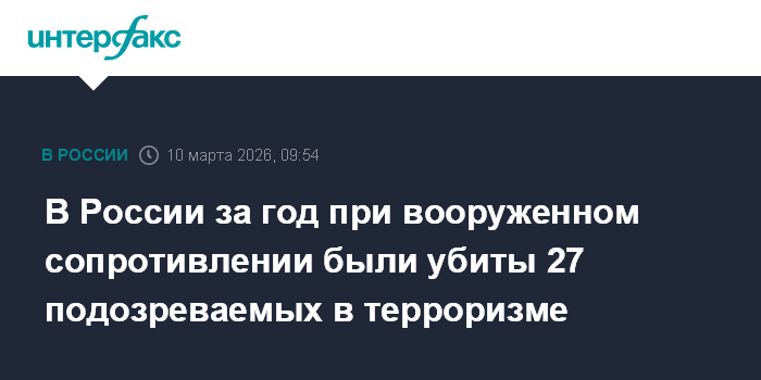 Москва. 10 марта. INTERFAX.RU - В России в 2025 году сотрудники органов безопасности задержали более 2,5 тысяч подозреваемых в террористической деятельности, 27 из них были ликвидированы при оказании вооруженного сопротивления, сообщил "Российской газете" председатель Национального антитеррористического комитета, директор ФСБ Александр Бортников.
