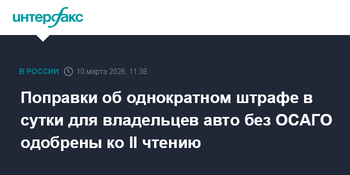 Поправки об однократном штрафе в сутки для владельцев авто без ОСАГО одобрены ко II чтению