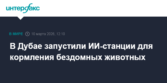 Москва. 10 марта. INTERFAX.RU - В Дубае запустили сеть интеллектуальных станций, использующих технологии искусственного интеллекта для кормления бездомных животных.